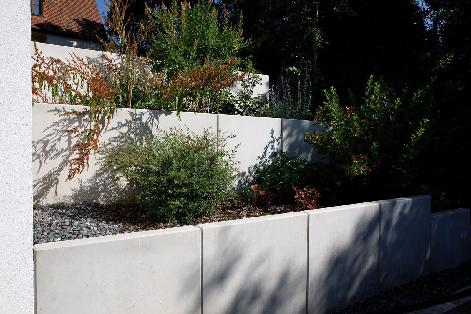 Platz gewinnen am Hang. Wir fangen Böschungen sicher ab – mit massiven Quadersteinen (Jurakalk), Gabionen oder L-Steinen. So entstehen ebene Flächen.