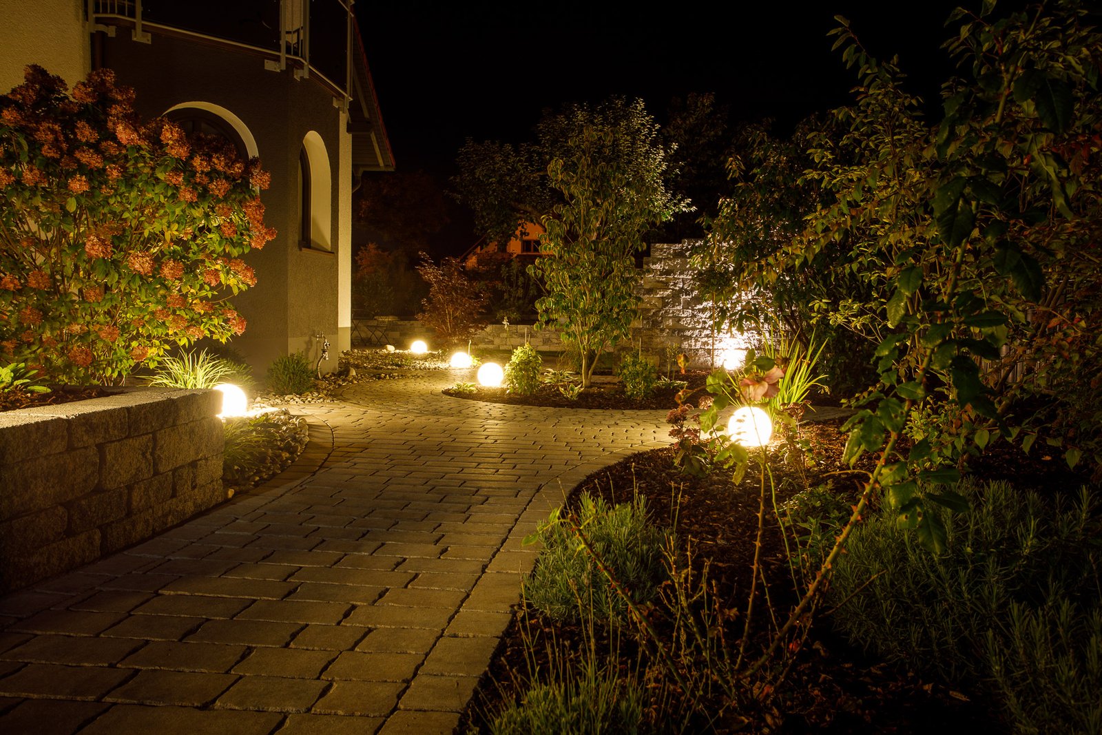 Wichtig: Wir denken an die Technik (Leerrohre, Erdkabel) schon beim Bau von Wegen und Mauern mit. So haben Sie später keine sichtbaren Kabel im Beet.