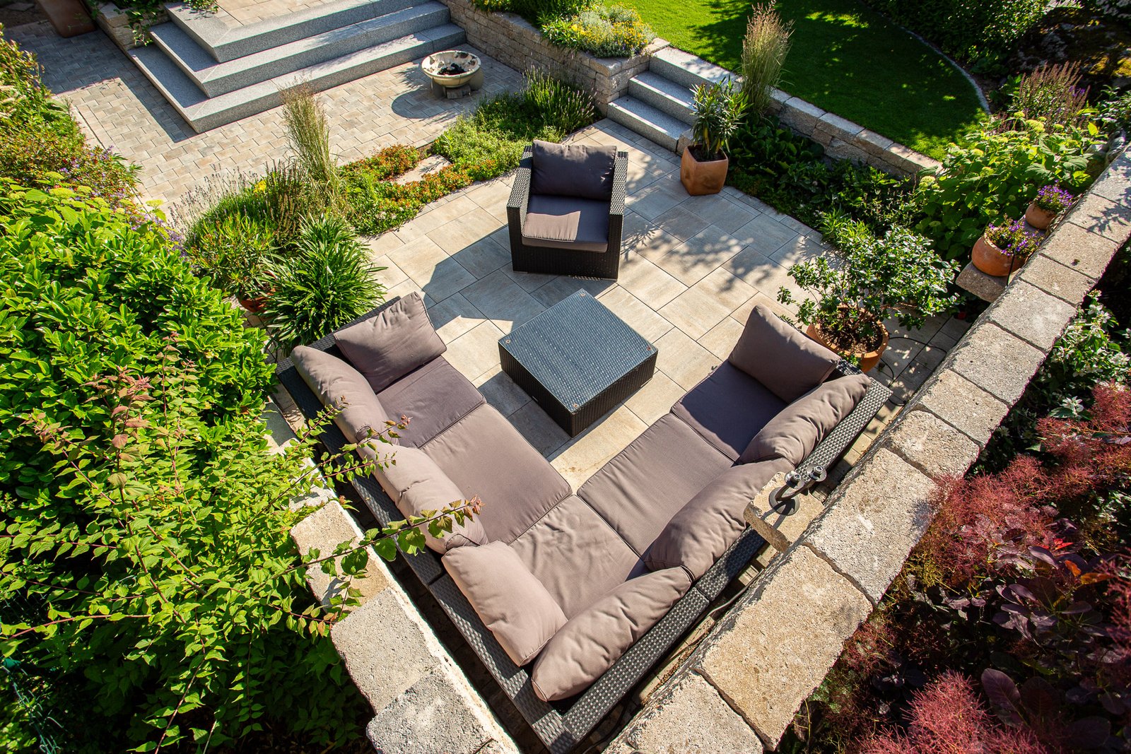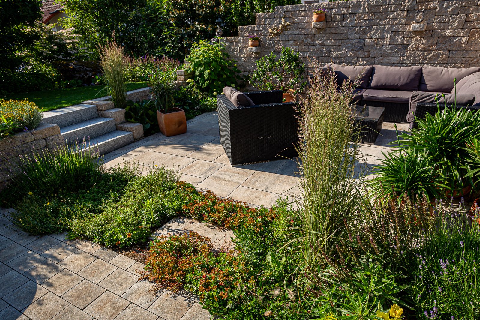Ein besonderer Fokus lag auf der Höhenentwicklung: Durch sauber ausgearbeitete Stufen und Podeste konnten die unterschiedlichen Ebenen funktional verbunden werden. So entstanden nicht nur sichere Übergänge, sondern auch neue Aufenthaltsbereiche, die den Garten deutlich großzügiger wirken lassen.