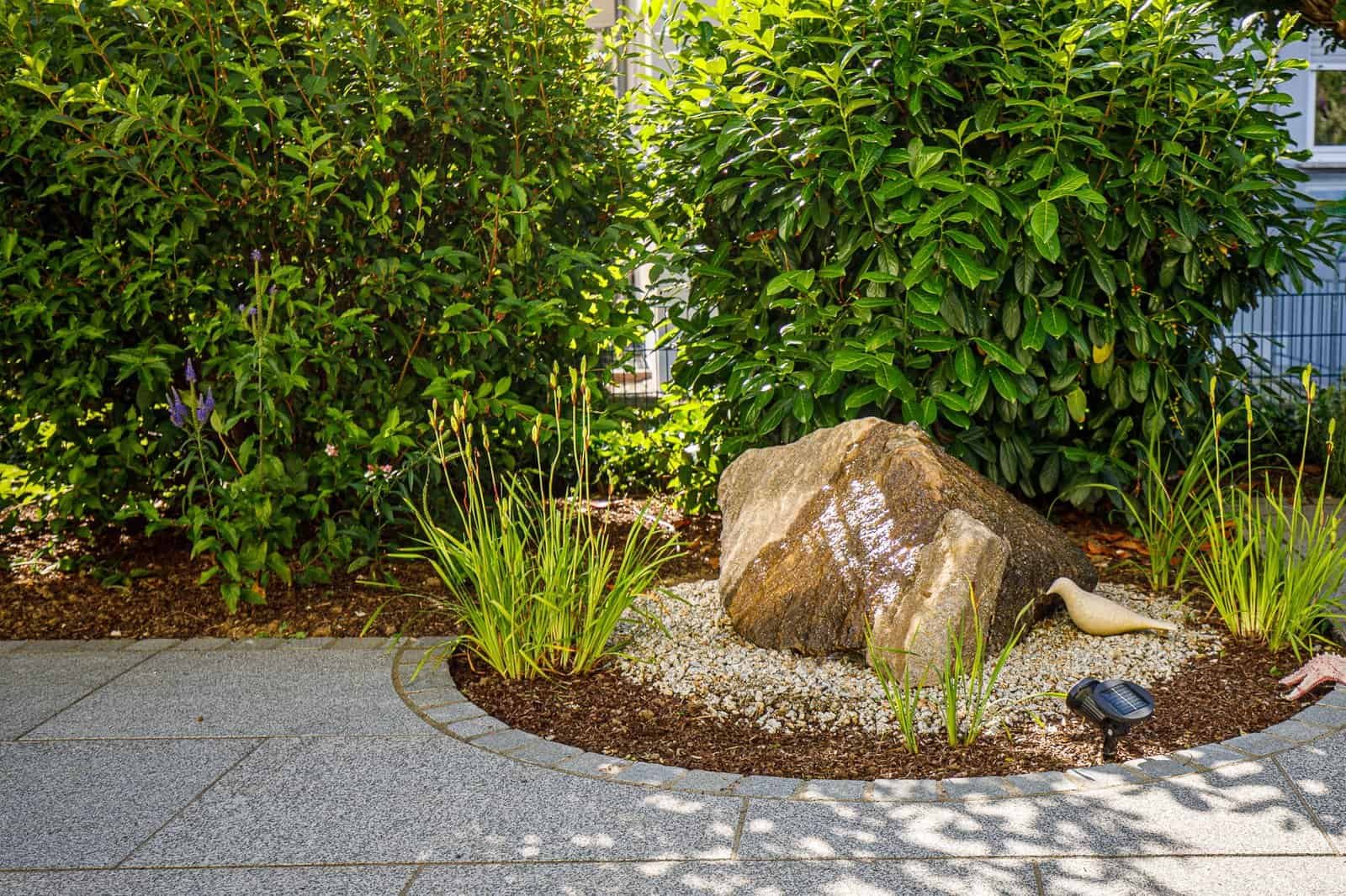 Wasser auf kleinstem Raum. Auch in kleinen Gärten oder Vorgärten in Bamberg sorgt ein sprudelnder Quellstein oder ein Wasserfall für Atmosphäre und blendet Straßenlärm aus.
